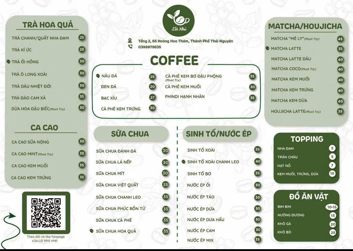 Từ truyền thống đến hiện đại khi nhắc đến Lối Nhỏ Coffee, người ta không chỉ nhớ đến không gian mà còn bị chinh phục bởi thực đơn đồ uống vô cùng phong phú. Đặc biệt, món trà ổi hồng và cà phê nâu tại đây luôn nằm trong danh sách “best-seller” nhờ sự cân bằng hoàn hảo giữa vị trà đậm đà và vị ngọt thanh của trái cây với vị cà phê ngyên chất, Đây là những lựa chọn tuyệt vời cho các buổi hẹn hò cuối tuần cùng người thương.