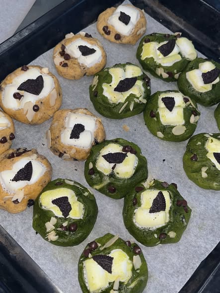 Vo bột thành viên tròn, đặt lên khay nướng có lót giấy nến. Nướng ở 170°C khoảng 10–12 phút. Khi bánh vừa chín, phần giữa vẫn mềm ẩm.