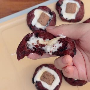 Lấy bánh ra để nguội, phần nhân marshmallow mềm mượt, kéo sợi