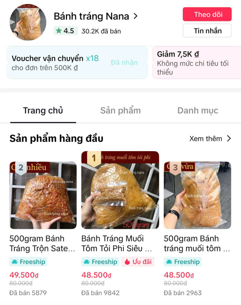 Ví dụ, một số tiệm bánh tráng gần khu vực trường học thường thu hút khách nhờ giá rẻ và vị quen thuộc, tuy nhiên lại chưa chú trọng đến bao bì hay hình ảnh thương hiệu. Ngoài ra, trên các nền tảng như TikTok, có những shop bán bánh tráng online nổi lên nhờ video “bắt trend”, thu hút hàng nghìn lượt xem nhưng chất lượng sản phẩm và dịch vụ chưa đồng đều.