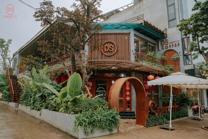 Quán cafe phong cách gỗ ấm cúng, gần gũi thiên nhiên.