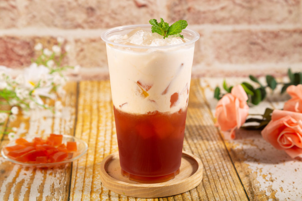 4.1. Trà sữa trái cây vị đào miếng giòn sần sật