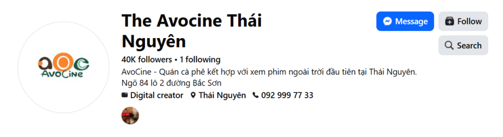 7. Thông tin về cafe phim Avocine Thái Nguyên