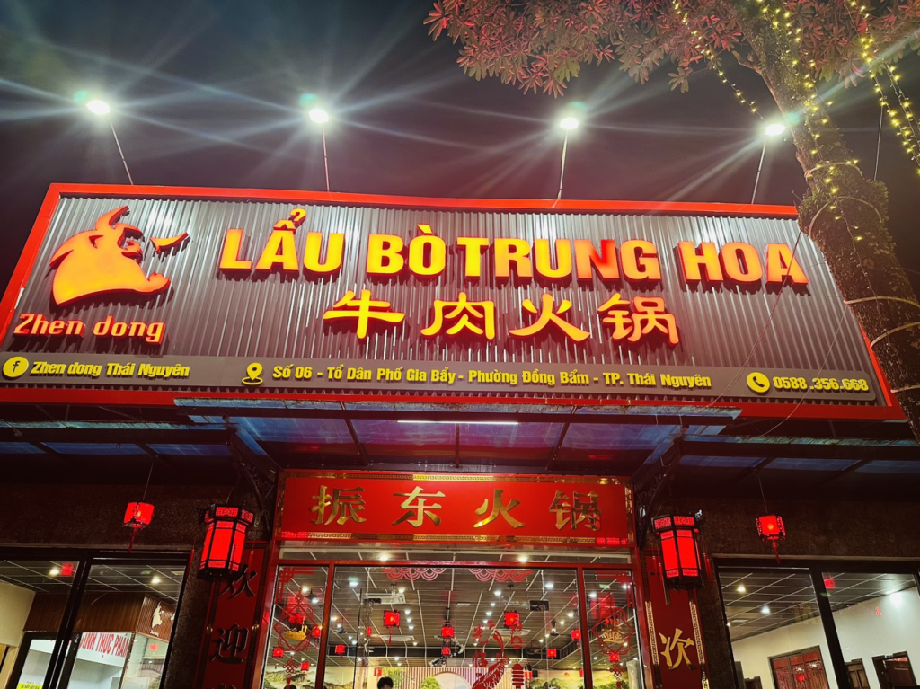 Nhắc đến quán lẩu ngon Thái Nguyên, không thể bỏ qua Lẩu bò Zhen Dong với phong cách Tứ Xuyên đặc trưng. Nước lẩu cay tê, đậm vị, cực kỳ kích thích vị giác.