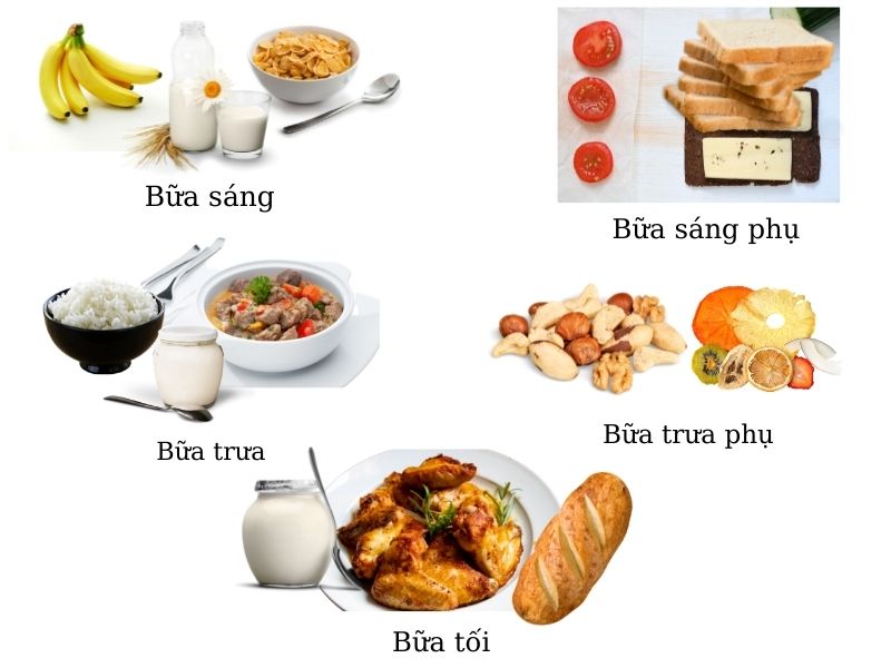 | Bữa phụ | 1 quả táo | 5 hạt hạnh nhân | 1 hộp sữa chua không đường |
