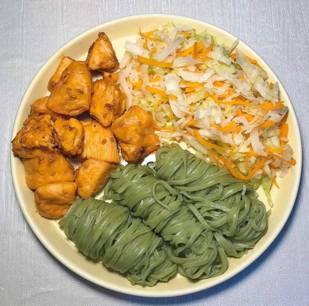 - Protein (ức gà, cá, trứng)